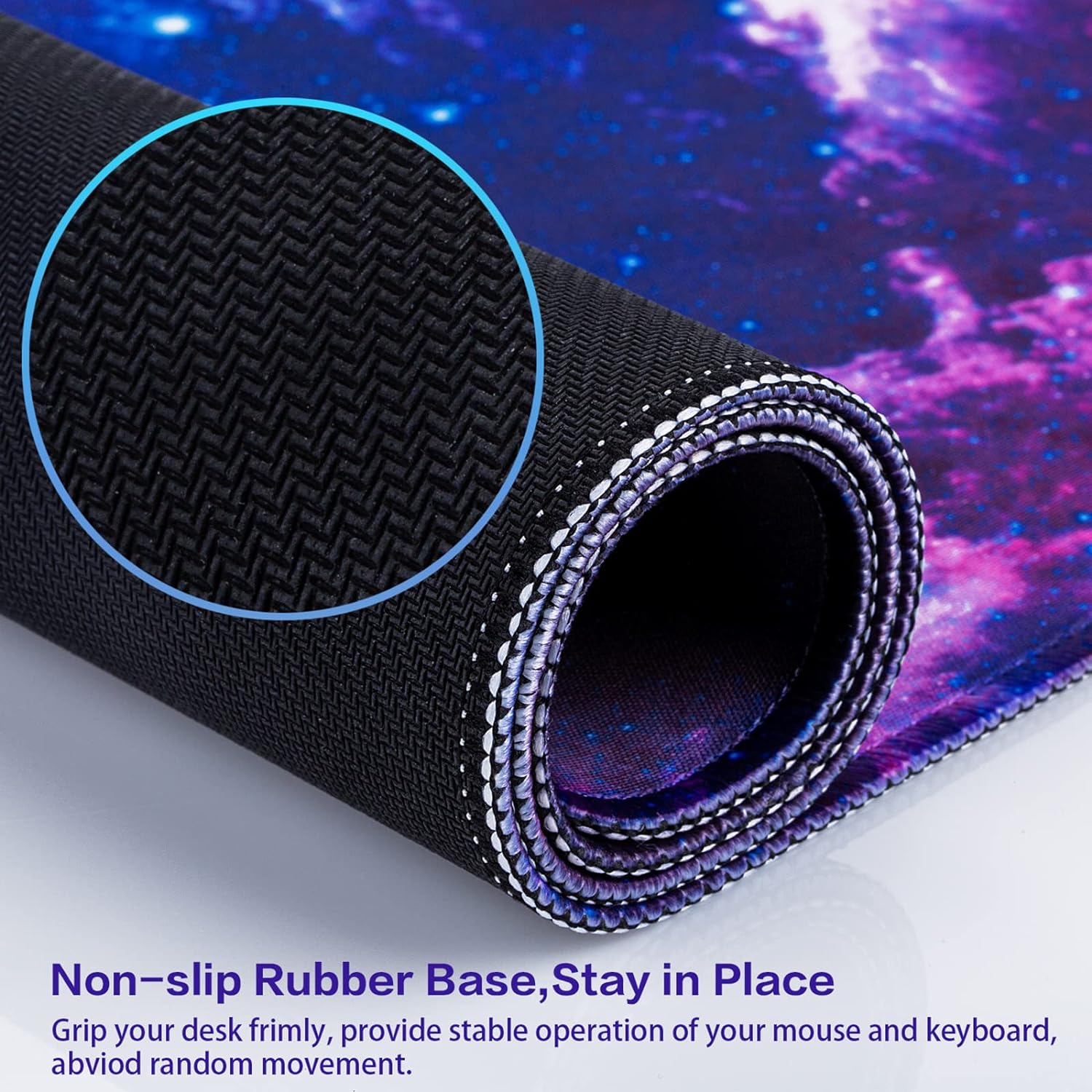 Wear-Resistant SurfaceThe lycra fabric cloth surface prevents scratches from sharp objects such as cutlery and pens | Wrinkle ResistantThe natural rubber base is flexible, so you don’t have to worry about your mouse pad creasing or breaking after extended use | Water & Oil ProofThe surface has a waterproof coating, which can easily resist water and oil, and is very easy to clean and take care of | Durability Stitched EdgesDouble stitching reinforcement, crafted to last, preventing fraying and ensuring consistent performance |